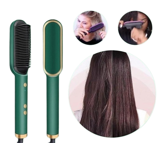 Escova multifuncional que alisa, modela e seca os cabelos. Prática e eficiente, compatível com qualquer voltagem.